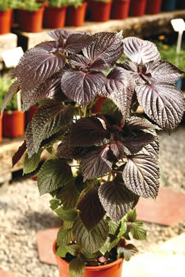 紫蘇又分成青色與紫色,是一年生的植物,有驅寒潤肺的功效,含有豐富礦物質,特別的香氣很適合搭配雞肉與海鮮。