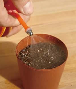 取噴水器撒水澆濕後,再放入約10顆種子。