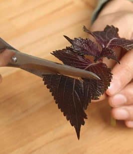 TIPS:剪下紫蘇葉後要修剪葉片,才不會容易流失水分營養,造成生長緩慢與負擔。