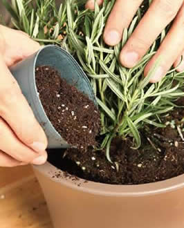 取比原本盆更大的容器,先放入額外的土,再施點葉肥。