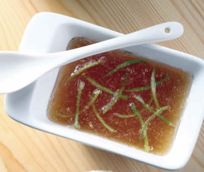 柚子的鹼性不但能中和肉類的酸性,清香的滋味也能讓海鮮吃起來更清爽。柚子醬除了直接可拿來當蘸醬之外;還可將胡椒粒磨碎;參在其中。或者將柚子皮切成細末、與去籽剁碎的青辣椒或紅辣椒研磨成泥﹔再加些檸檬汁與海鹽提味。