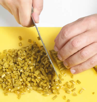 1. 酸豇豆以清水略洗淨後瀝乾水分,切成約0.5公分的細粒狀,備用。