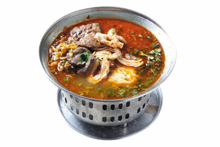 「曾記鼎邊銼」是夜市美食街裡唯一賣鼎邊銼的攤 位,但當問起攤子的招牌美食時,老闆很自豪地說「每樣都是!」鼎邊銼是以蓬萊米研磨成粉加水調勻,先在抹了油的熱鍋上燙成薄皮,加入金針、豬肉、蝦仁、香 菇、魷魚絲、木耳、筍絲等多種配料湯頭同煮,滑溜溜的口感結合鮮美湯頭,十分過癮,而臭豆腐的皮薄脆好咀嚼,且店家用小火慢炸,所以臭豆腐吃起來不會太 油,泡菜清脆可口,酸度甜度剛剛好,生炒花枝羹也很出名,兼具熱炒的大火爆香與羹湯的香甜稠密,咬下厚實的新鮮花枝,喝口帶酸甜奶油味的秘製湯頭,士林最 傳統的古早味莫過於此一味。