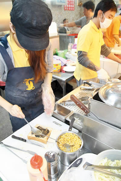 創始於1972年的「忠誠號」,是士林夜市中人氣 超旺的一家老店,光是攤位就一家抵三家,不過即使這樣還是經常客滿;店內美食豐富多樣,主要有四大天王:生炒花枝、天婦羅、蚵仔煎與豬肝湯,湯鮮味濃的生 炒花枝,一碗就讓人既飽足又溫暖,喜歡吃辣的朋友可以加些辣油,會讓整體味道更上一層樓,天婦羅則是小鯊魚製成的新鮮魚漿製成,每一片都是純手工製作,十 分Q彈好吃,就連配料也是特別精細挑選來自高雄旗津的小黃瓜,而蚵仔煎口感偏軟,煎皮吃起來沒有粉味,蚵仔個頭不算小,青菜也給得十分大方,咬下去有鮮味 在嘴裡爆開的感覺!而人氣暢旺的麻油豬肝湯,鮮嫩柔軟的切片粉肝與香噴噴麻油大骨高湯一同熬煮,據目擊觀察每一鍋大概十分鐘內就賣完,可見這裡生意有多好 哩!