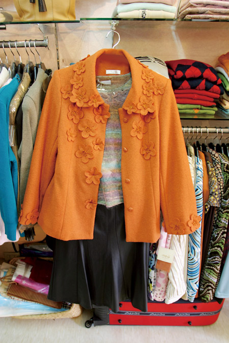 丹麗名店服飾日本進口精品服飾,客層約40~50歲婦女,除了女裝,店內還有少數童裝、包款,這只駝鳥包包售價約6200元。