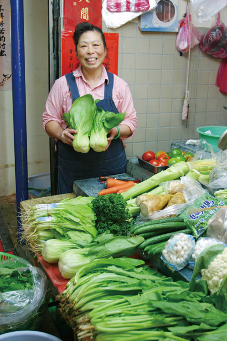 成功蔬菜號據說連鼎泰豐都用這裡的菜,新竹以北菜源,宜蘭蔥、梨山高麗菜、冬筍,都是時節新鮮蔬菜。你看過大青江菜嗎?別處的青江菜可沒有這裡這麼高大。