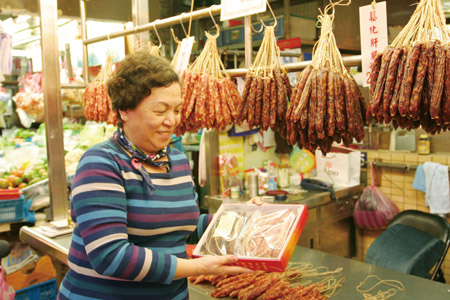 志成肉品專賣店的豬肚、豬腳、香腸最符合年味。