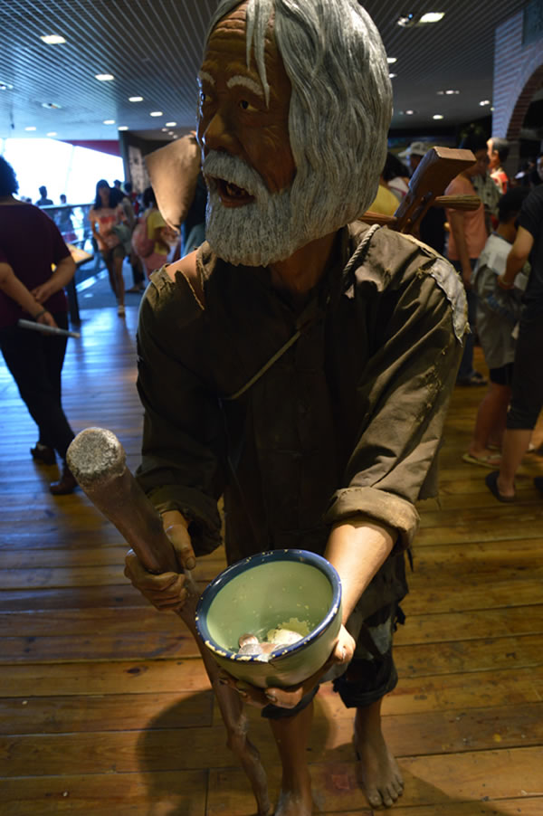 ↑館內展示各種庶民文化,乞丐托碗乞討的景象也陳列其中。
