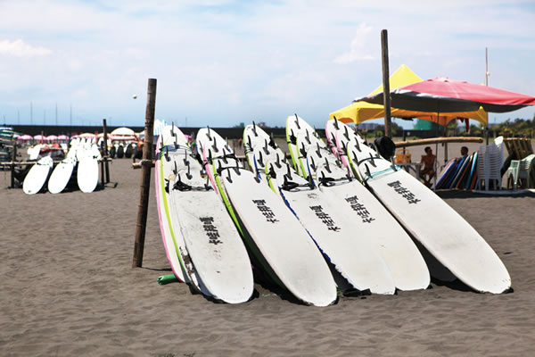 ↑沙灘上就有許多出租衝浪板的攤位,不必自己帶衝浪板,也能體驗衝浪的快感。