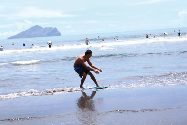 ↑這種在大海與沙灘交界處滑行運動叫做沙板,與一般衝浪板比較短,且難度較高,而石港的沙灘平順非常適合玩沙板。