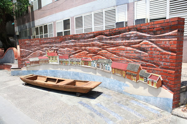 ↑老街上的圍牆刻有古早時頭城的生活景像,欣賞這幅景像引人思古之幽情。