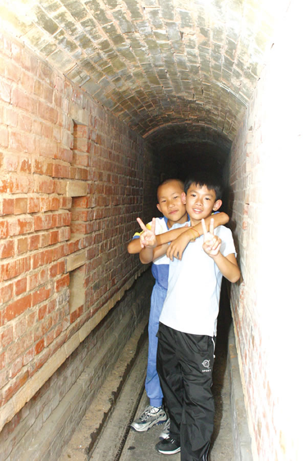 下了樓,就發現到在陶瓷教育館下方,有個小小的入口,剛好容納一個人進出,許多遊客從裡面循序的走出來,才發現到,原來這個地方是「隧道窯」,它是六○年建造出來的長形隧道,主要是用來燒製陶器的。