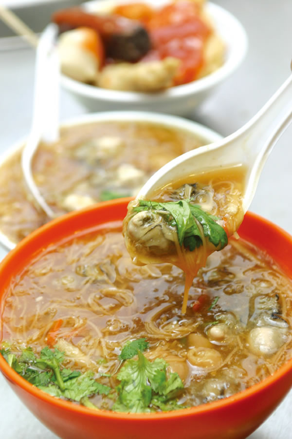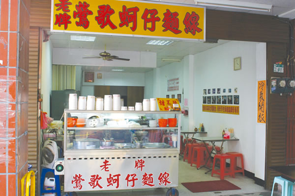 除了壽司與肉圓,最道地的傳統小吃之一就屬蚵仔麵 線了,在當地擁有了二十多年的蚵仔麵線,也是讓許多遊客常會到那兒品嚐的小吃之一。麵線的特別處在於它的蚵仔,蚵仔都是老闆娘每天早上到市場現買又精心挑 選的新鮮蚵仔,大顆而又實在,讓許多人總是喜歡到她這兒來吃她的麵線。再加上,她這兒常常是鶯歌在地人,總是會在午後時分來這兒點碗麵線一起話家常的地 方,所以要知道鶯歌當地究竟有什麼趣事、美食,來這兒準沒錯。