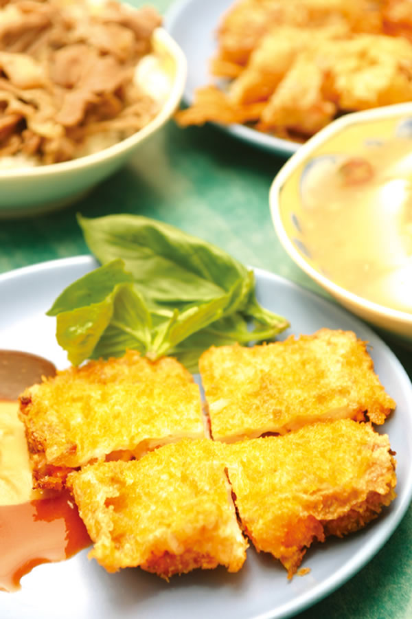 所以在吃瓦片蝦餅這道料理時,可以吃到整尾蝦子, 而且在品嚐時,建議先不要沾醬,應該品嚐蝦餅的原味,會嚐到餡料裡食材的原味,而且老闆特別提到蝦餅、蝦卷的餡料裡,並沒有特別添加胡椒粉等調味料下去調 味,特別花費了許多時間去研究製作出來的,所以嚐到的餡料都能保有食材原有的鮮味。